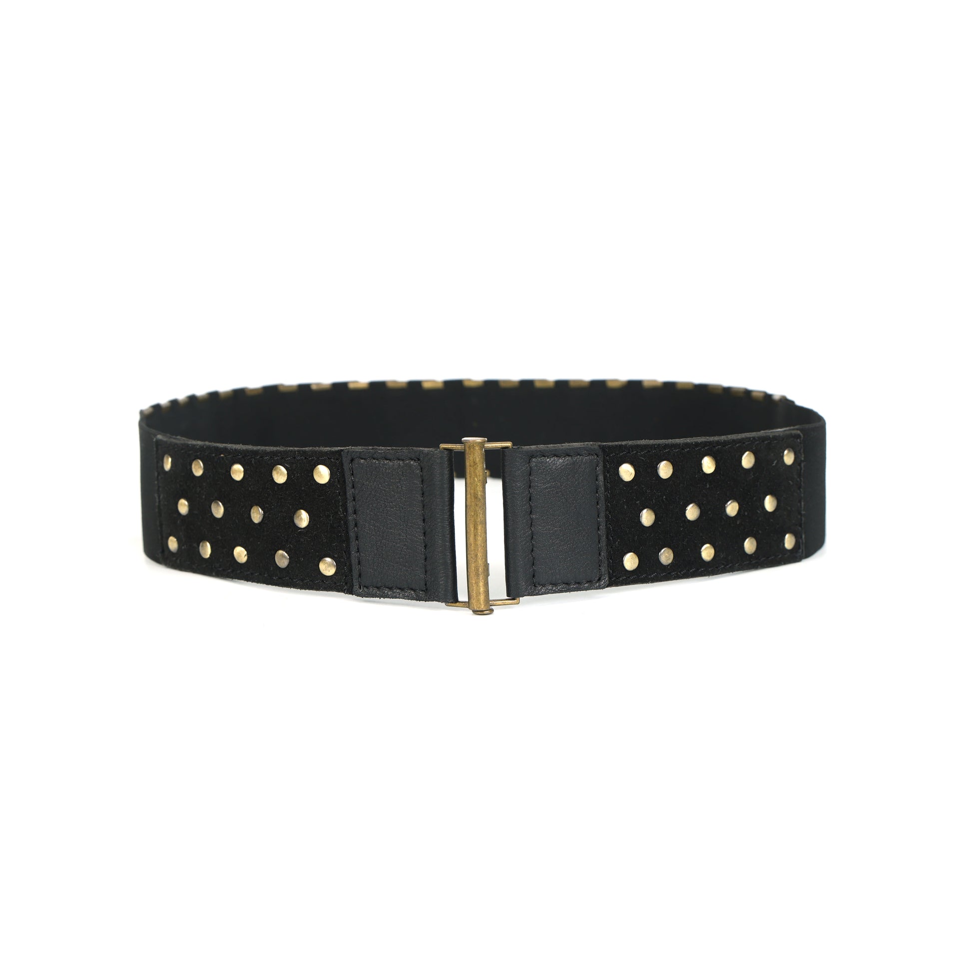 Celtic Black Studded Elastic Waist Belt for Women | Trendy Stretchable Fashion Belt with Golden Buckle for Dresses & Jeans