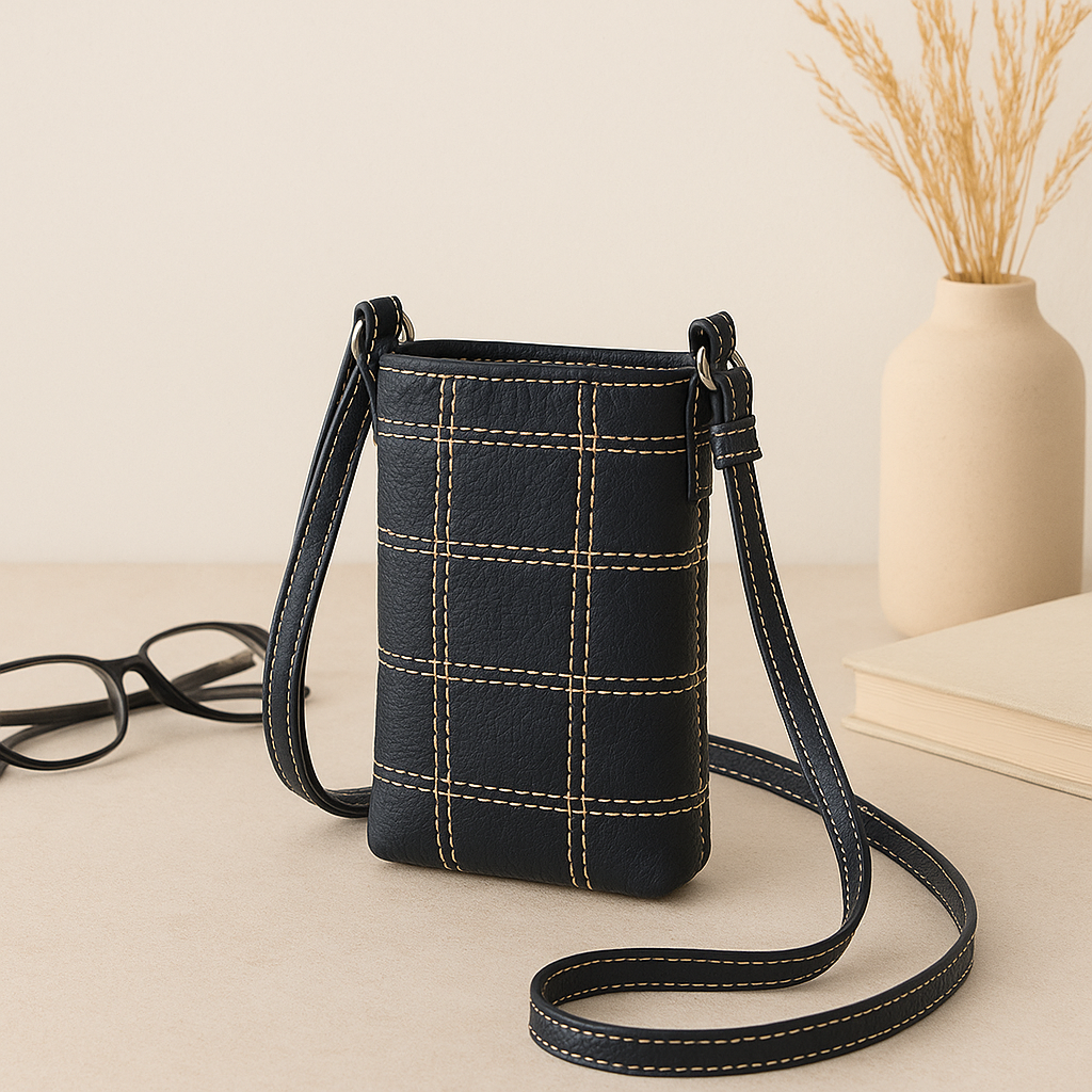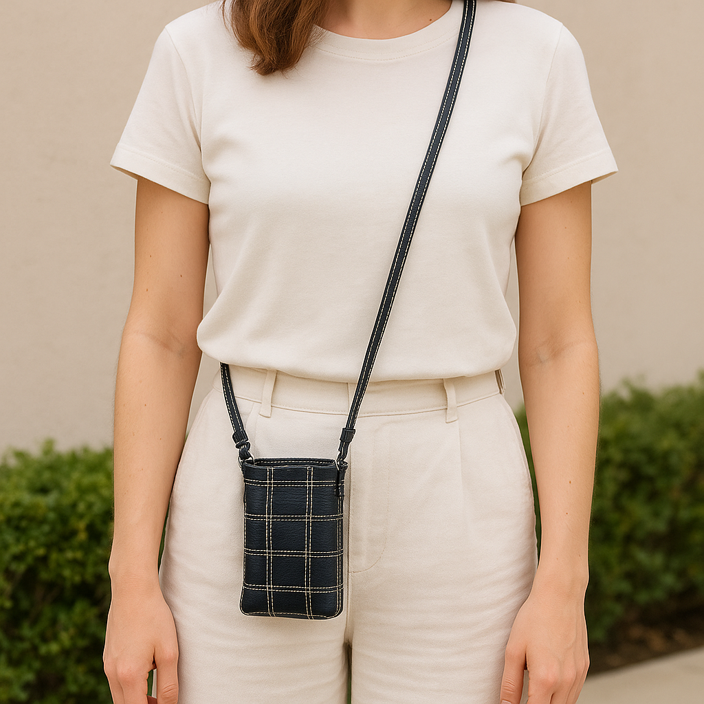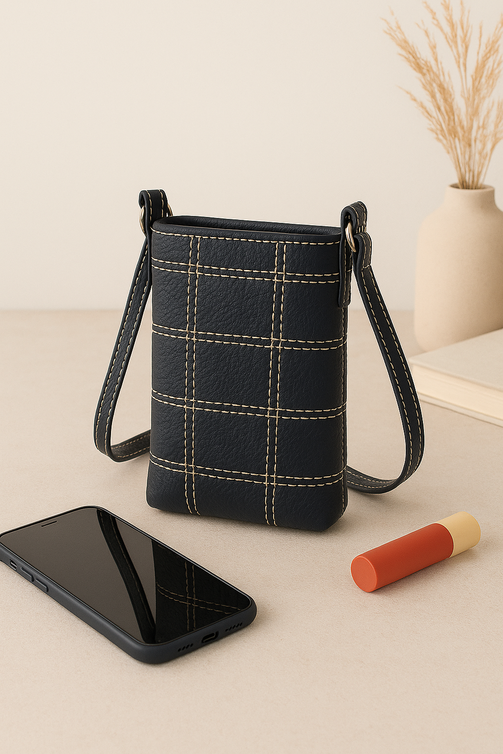 Elegance Redefined: Black Leather Sling Bag with White Stitching. Art: BG-1477
