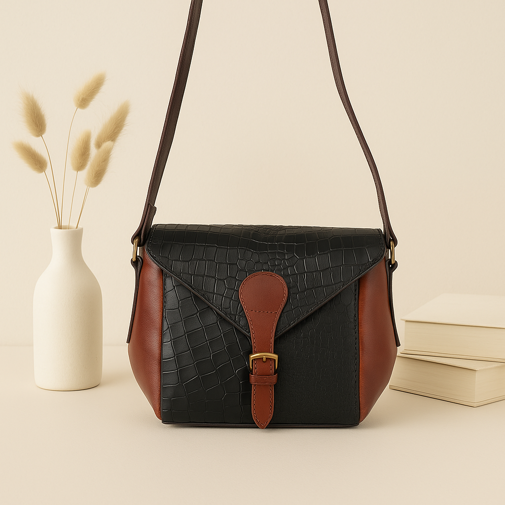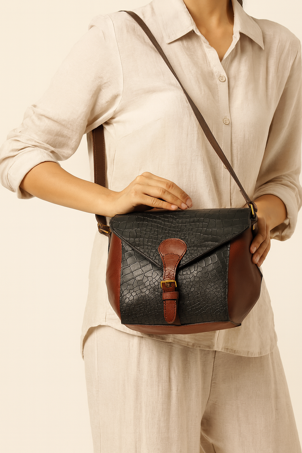 Elevate Your Style with Our Black Croco Leather Sling Bag. Art: BG-1153