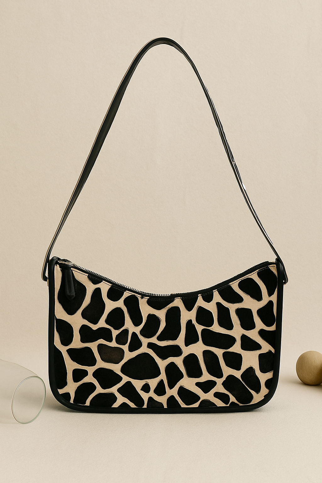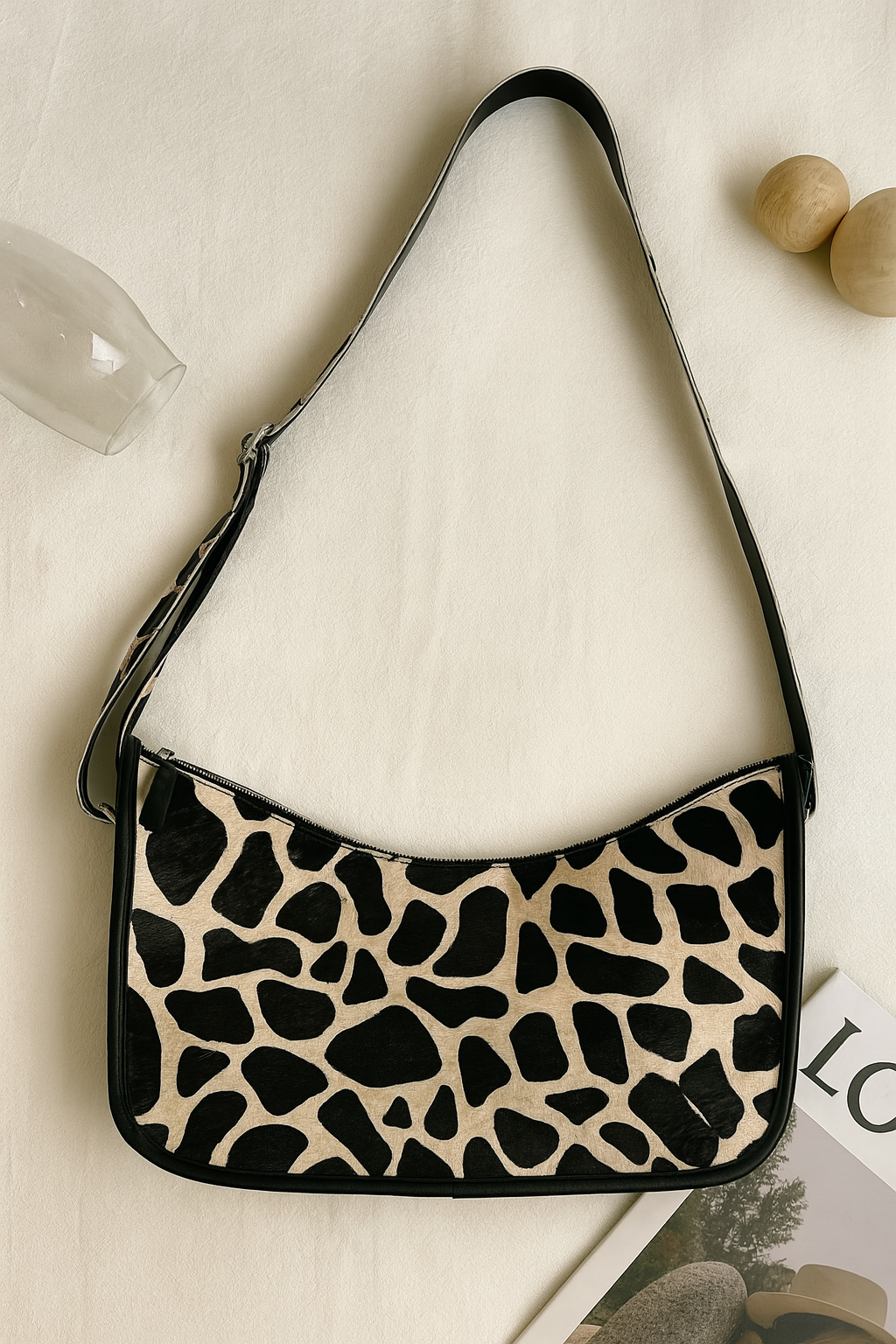 Elevate Your Style with our Black Leather Sling Bag featuring Printed Hair-On Design. Art: BG-1361