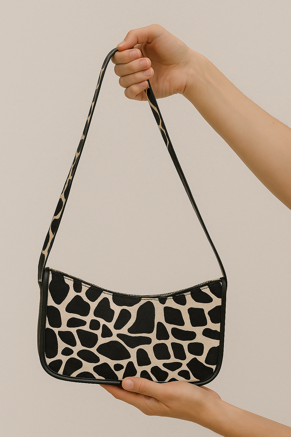 Introducing our chic and stylish Sling Bag in sleek black leather with a unique printed hair-on design! Elevate your fashion game with this exquisite accessory, combining sophistication and trendiness in one package.