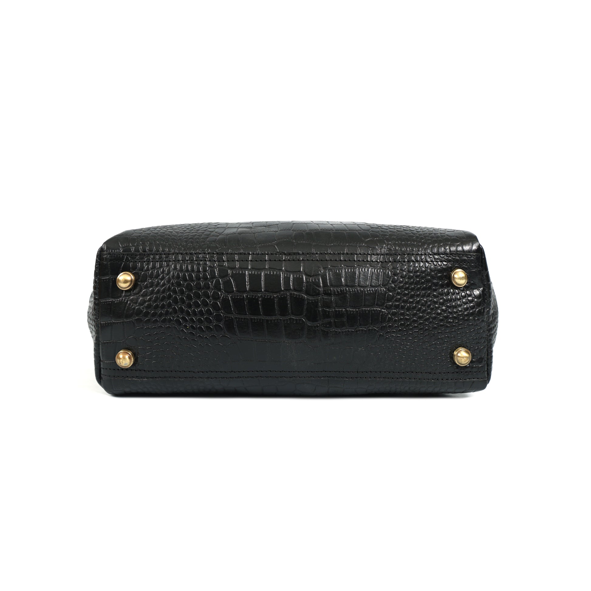 Genuine Leather Croc-Embossed Black Satchel | Designer Style Tote for Women Art:-BG-1655
