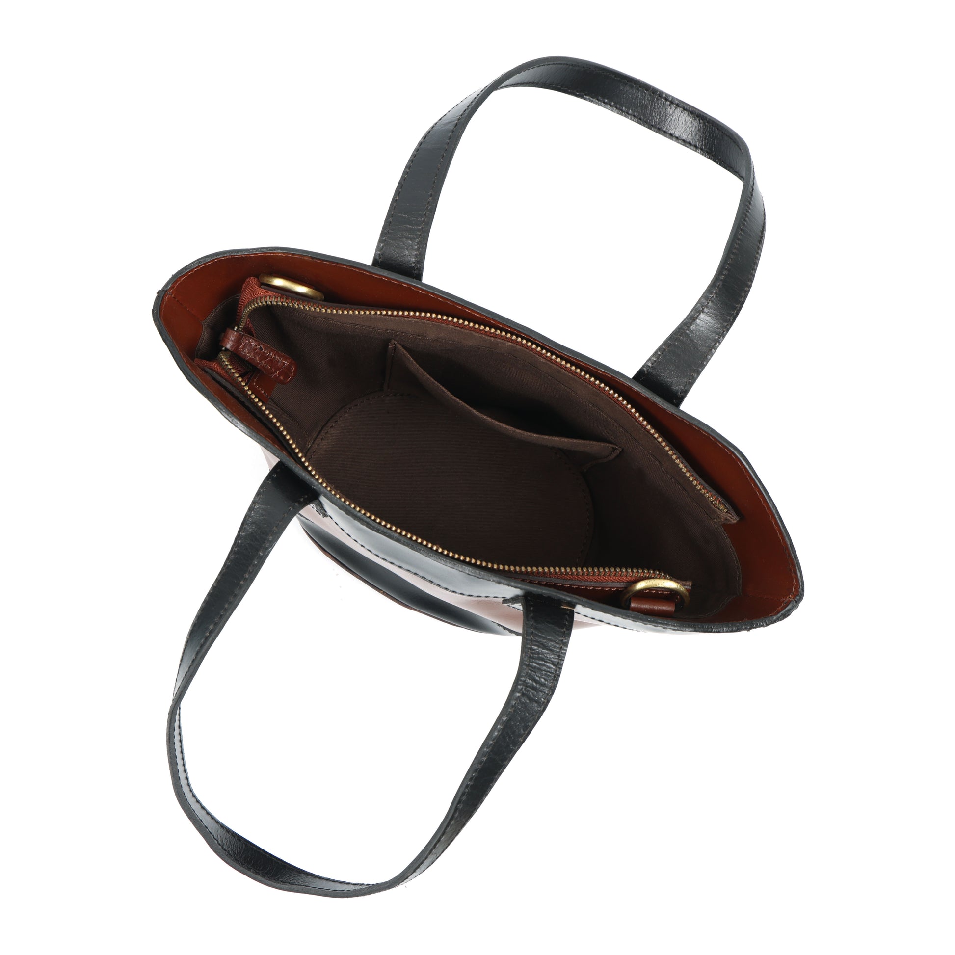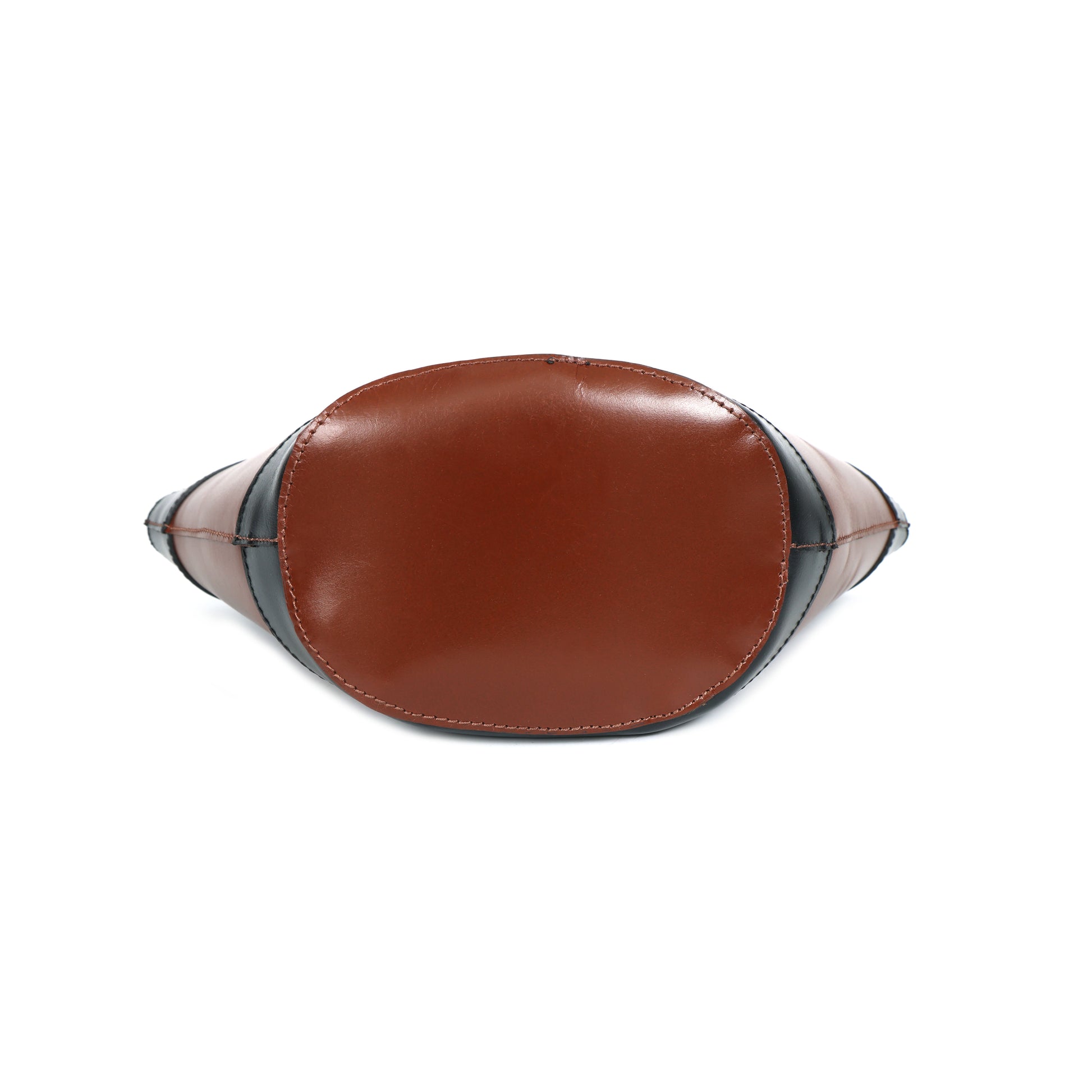 Genuine Leather Two-Tone Tote Bag | Stylish Brown & Black Shoulder Bag