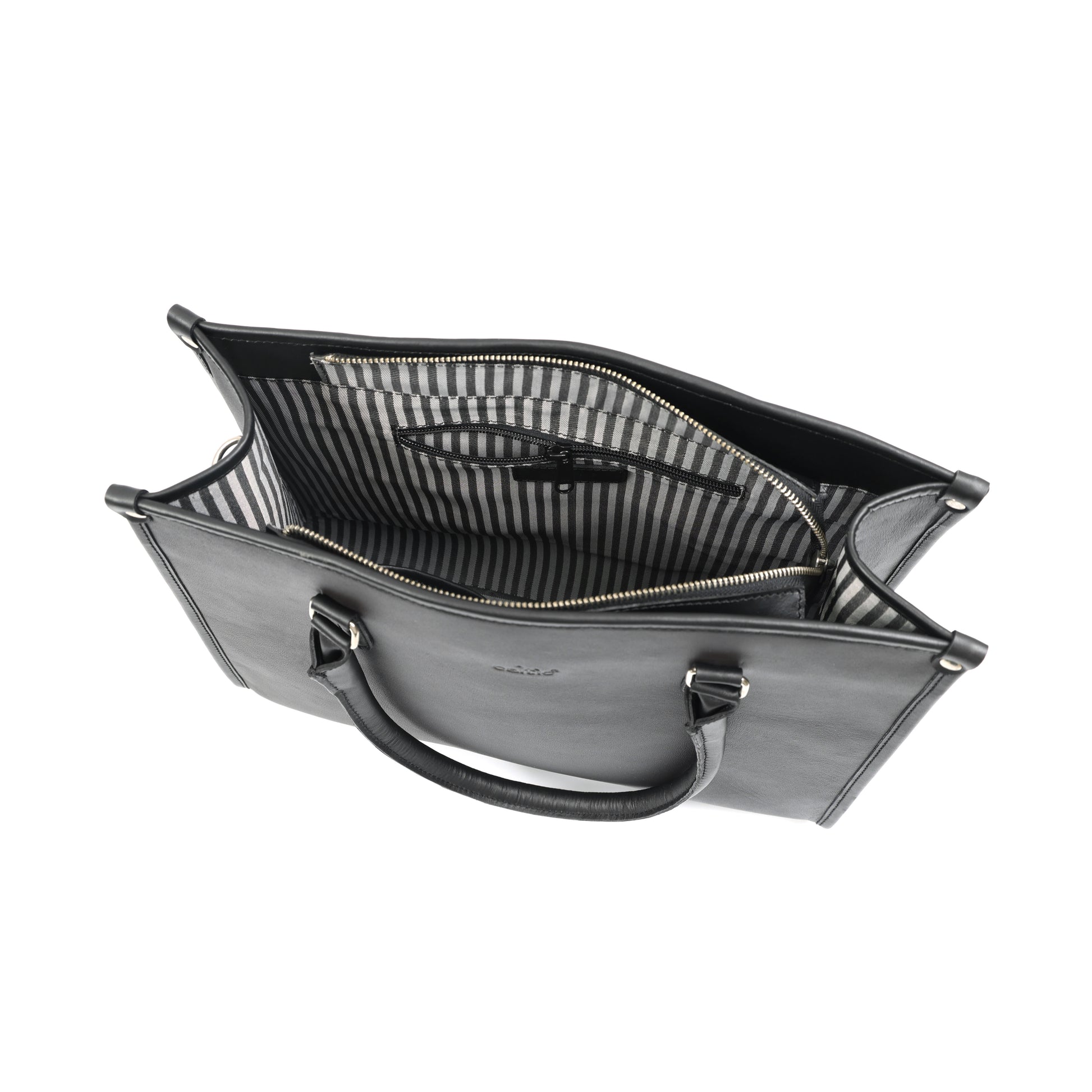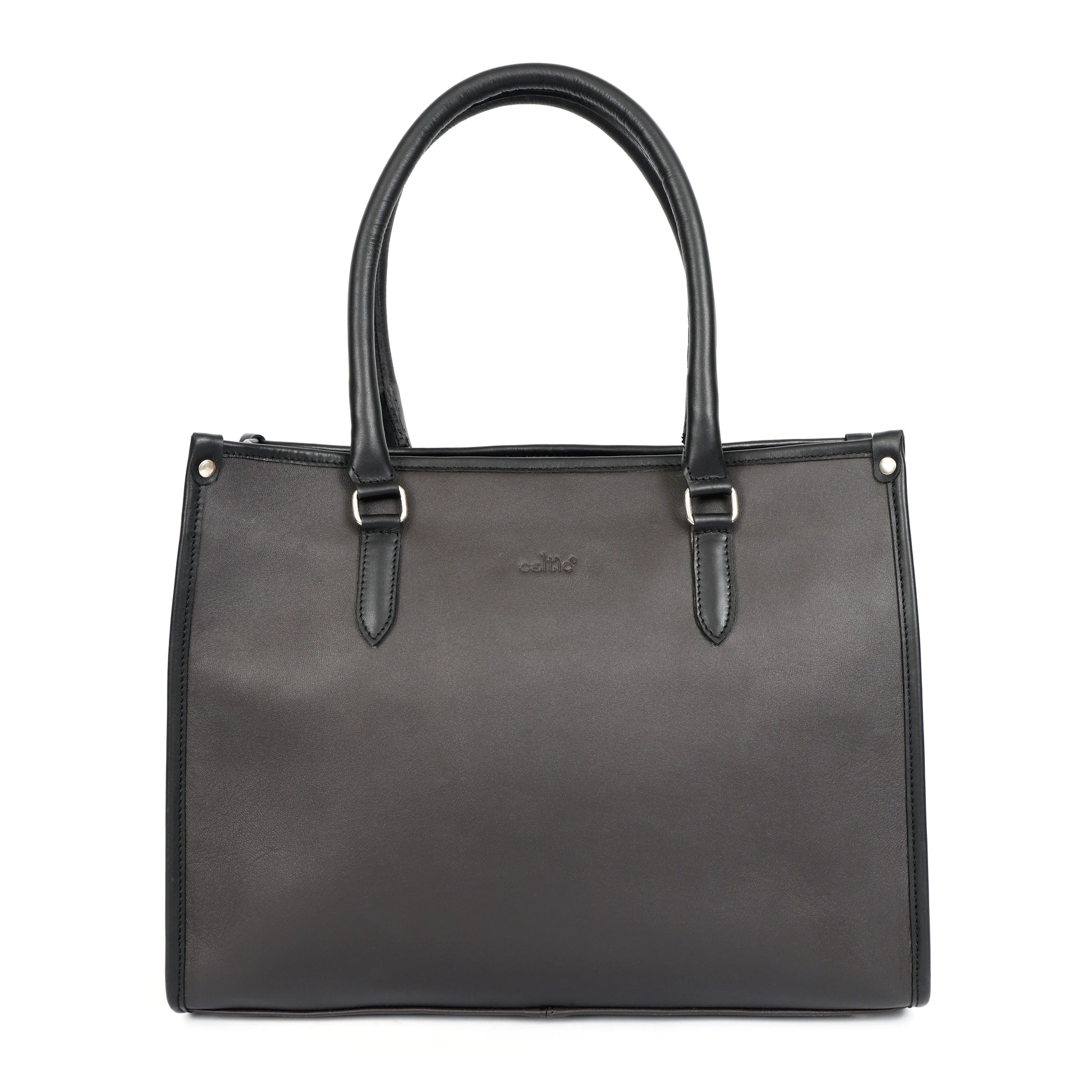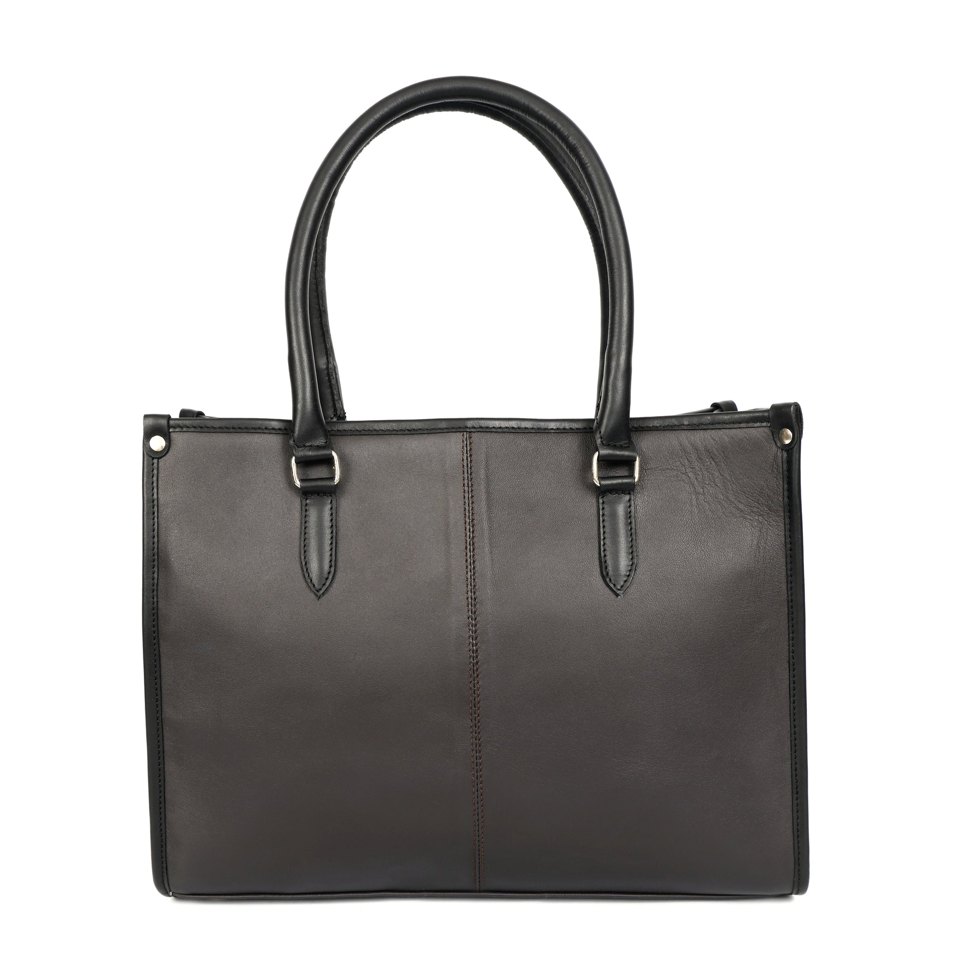 Premium Black Genuine Leather Office Tote for Women | Structured Handbag with Sling Strap