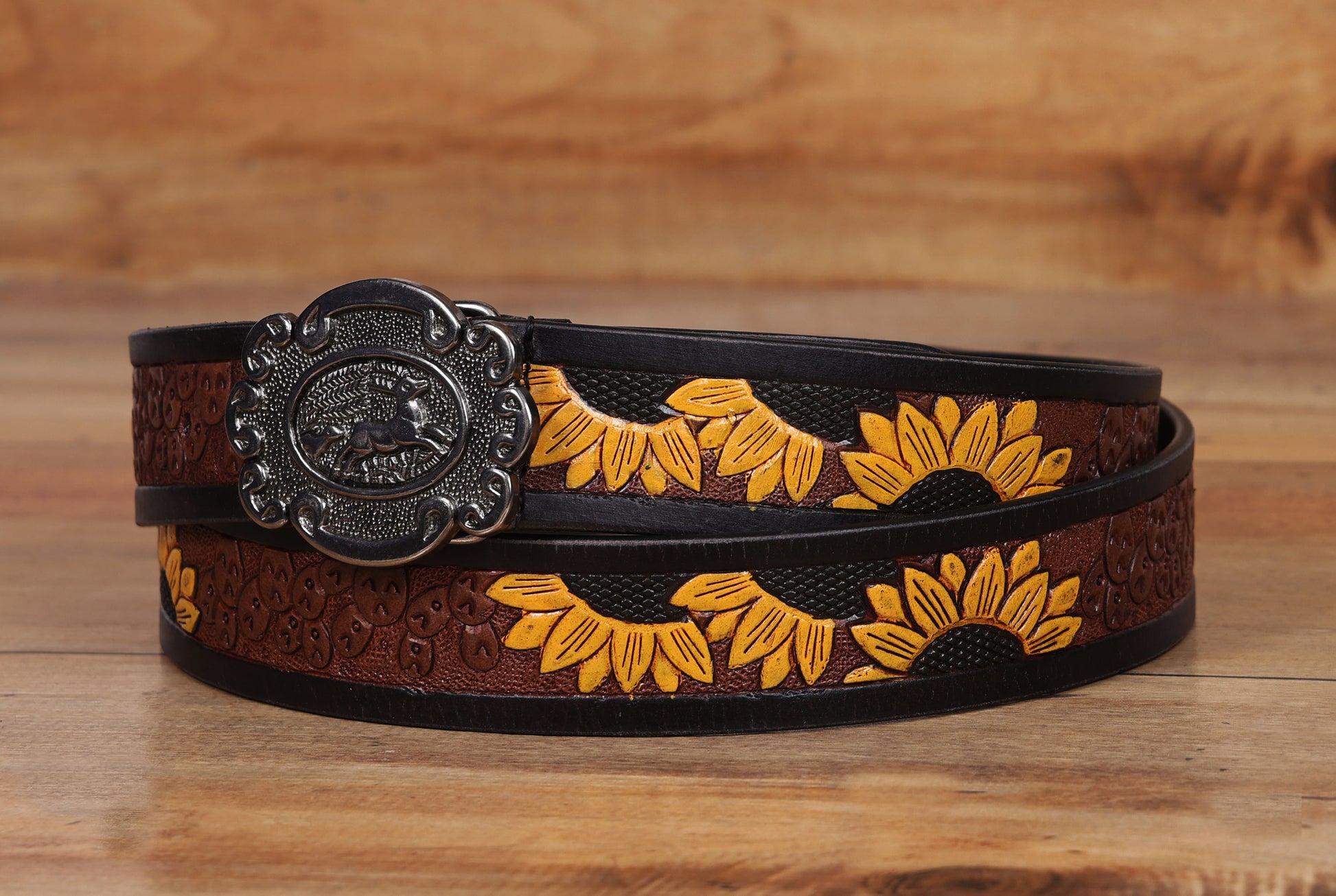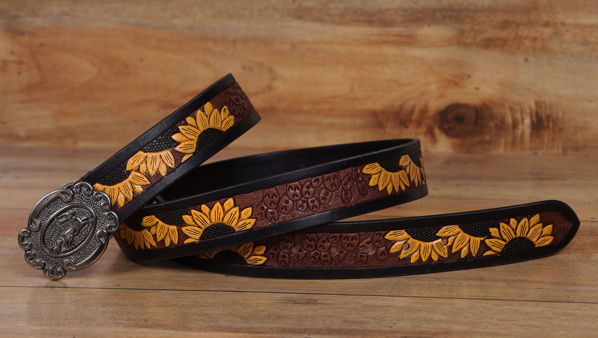 Belt Description : • Hand-Carved Sunflower Design • Antique Metal Buckle • Durable & Long-Lasting • Vibrant &Stylish Look Wallet Description : Size:-H9xL12xW2 Cm Weight:-90 Gm • Sleek Black Finish • Multiple Card Slots • Secure Cash Compartment • Slim & Compact Material Type: Wallet and Belt made of Genuine Leather |