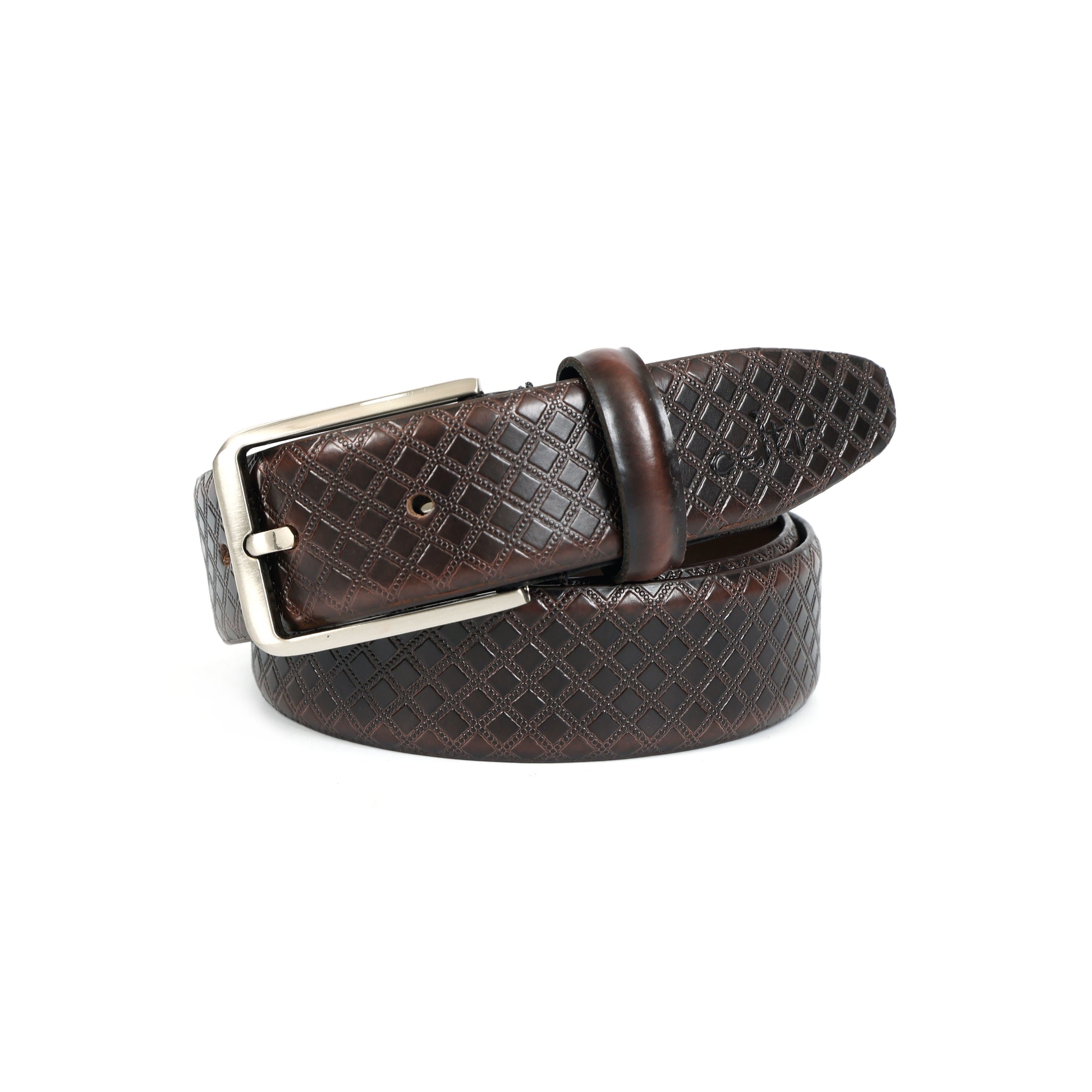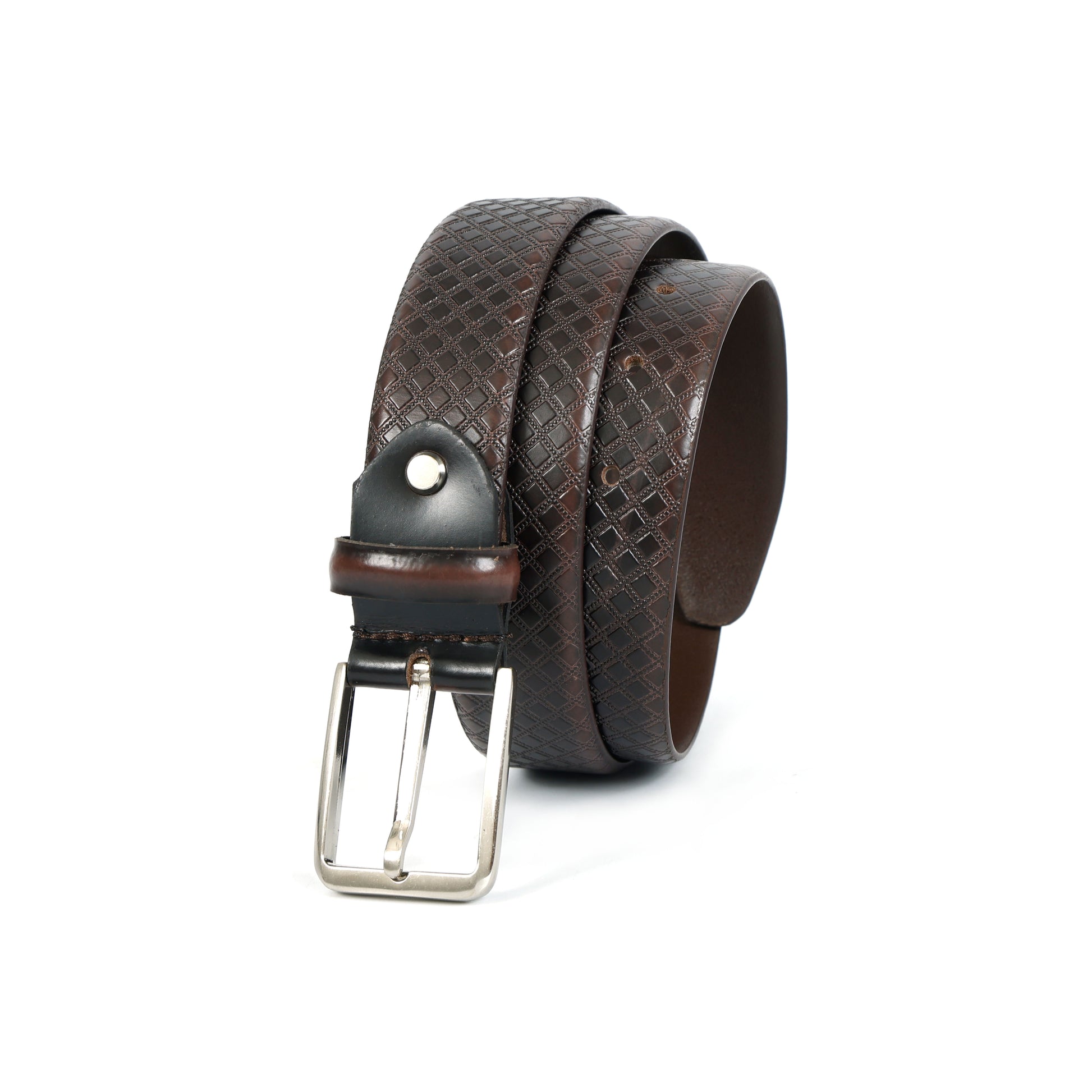 Premium Textured Brown Leather Belt – Unisex with Classic Silver Buckle