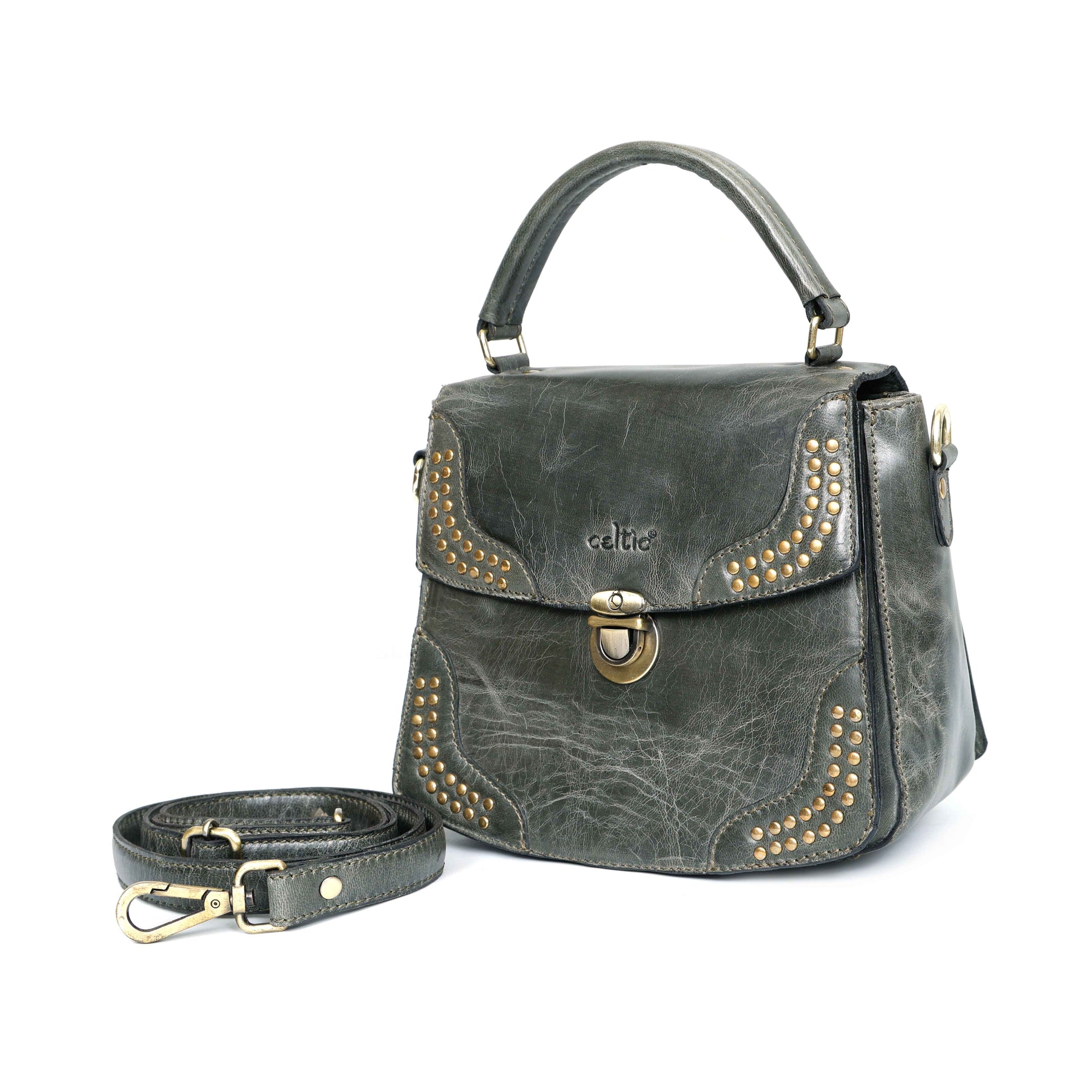 Premium Genuine Leather Handbag with Adjustable Strap & Stud Detailing